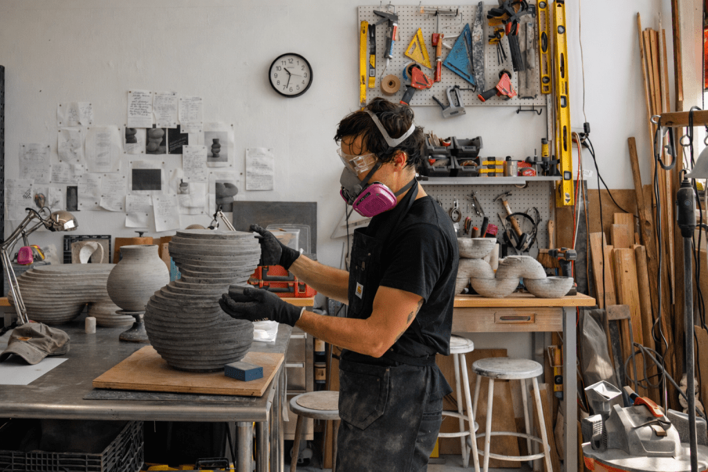 Artist and designer exploring biomaterials, sculpting bioplastic and natural materials into unique forms that blend sustainability, craft, and sculptural design.